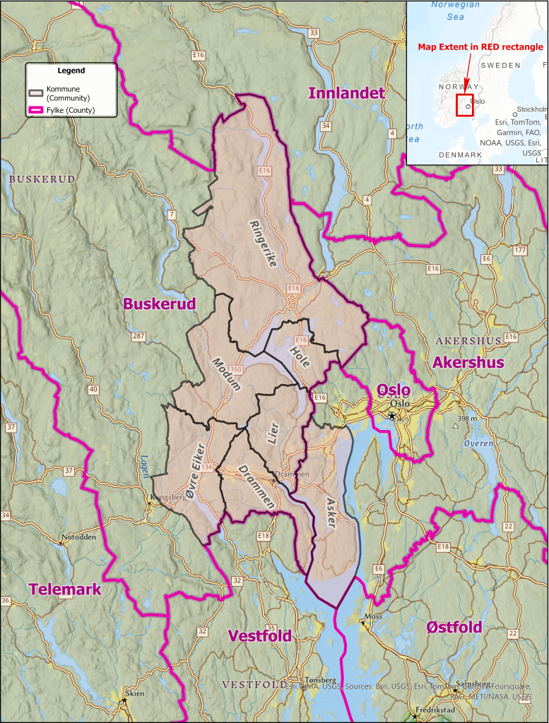 To the right you will see a map of the modern day kommunes that make up the geographical area that constitutes the Norwegian Homelands of members of the RDD Lag. Most are in the Southeastern part of Buskerud Filke, while one is in Askerus Filke. Hurum, Røyken and Asker were three independent municipalities from 1837 to 2020. On January 1, 2020, the three municipalities were merged into the new Asker municipality. Also in 2020, Neder Eiker was incorporated into the kommune of Drammen. Below are descriptions of the political subdivisions kommune and Fulke in Norway. These descriptions are extracted directly from Wikipedia, and the references are listed below.