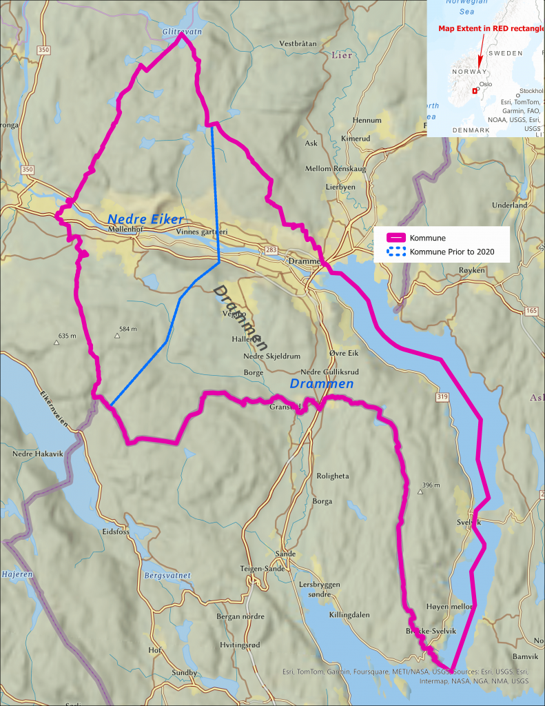 The city of Drammen was founded in 1811, formed from two separate towns - Stromsø and Bragneres. The city has about 64,000 residents but the population of the kommune which includes the surrounding area is 150,000. Drammen is the 6th largest city in Norway, located about 25 miles southwest of Oslo on the Drammensfjord.